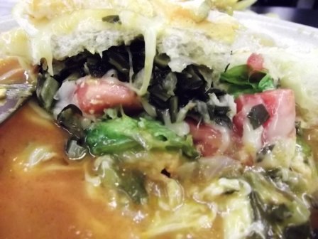 ホウレンソウとキャベツ、ハムなどたっぷり